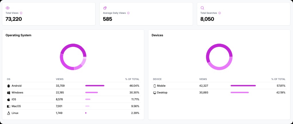- OS Distribution — Breakdown by operating system (Windows, macOS, iOS, Android, etc.).