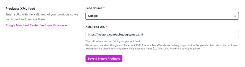 - Paste your Google Merchant XML feed URL.